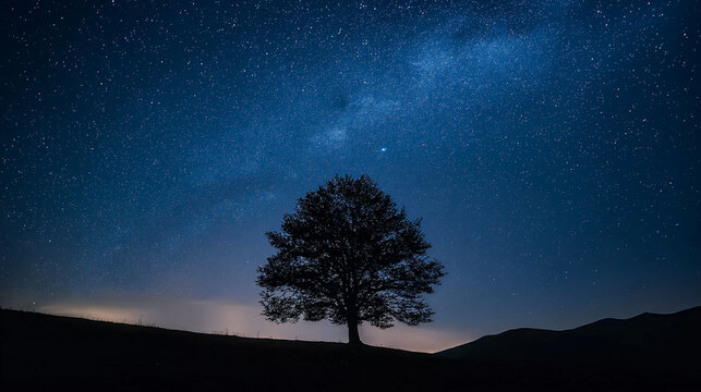Generative ai collage photo of beautiful landscape old magic glitter tree in mystical hill woods