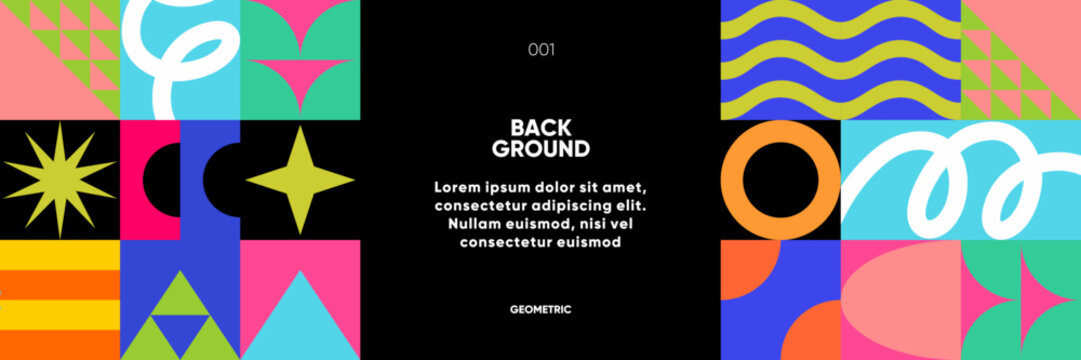 A bold abstract composition with geometric shapes in a mosaic style. A minimalist and modern vector background for posters, festivals, music, parties, and trendy banners.