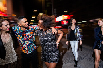 trendy young influencers and successful businesspeople having fun at a casual rooftop party enjoying networking socializing and celebrating in an exclusive urban nightlife event