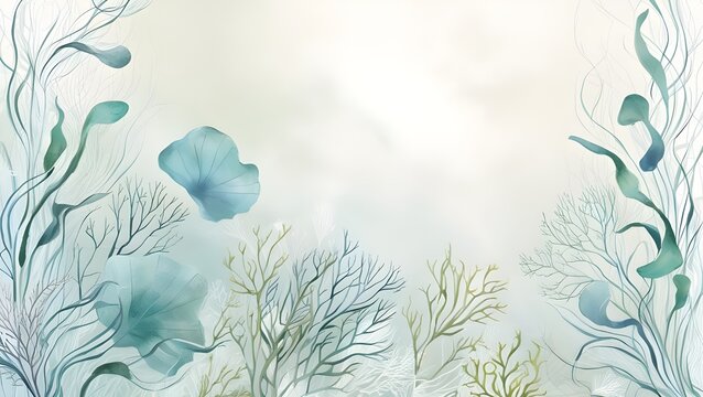 AI GENERATE, Abstract underwater botanical design with floating algae and coral shapes