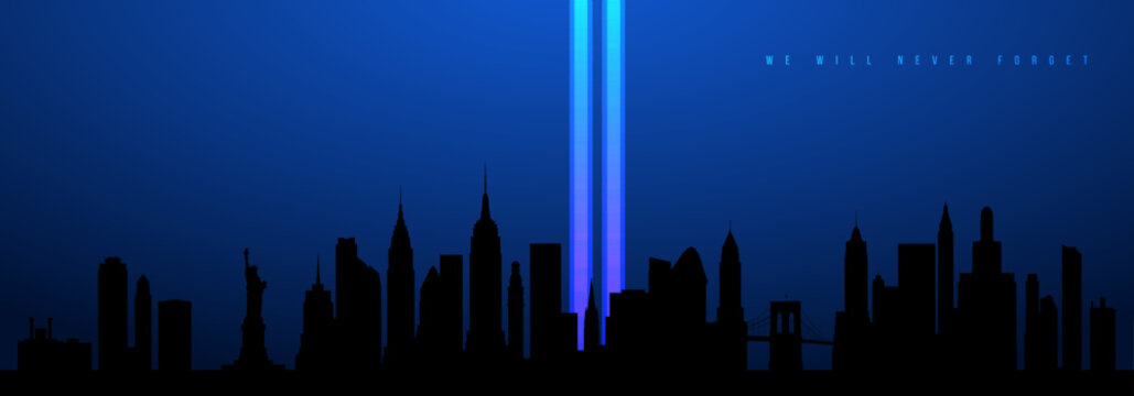 9 11 Patriot Day banner card design. USA tribute September 11, 2001. We will never forget