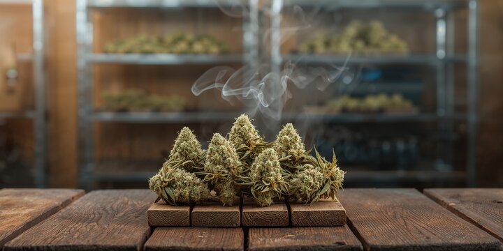 Cannabis buds undergoing curing process, trichome preservation, for medicinal use awareness