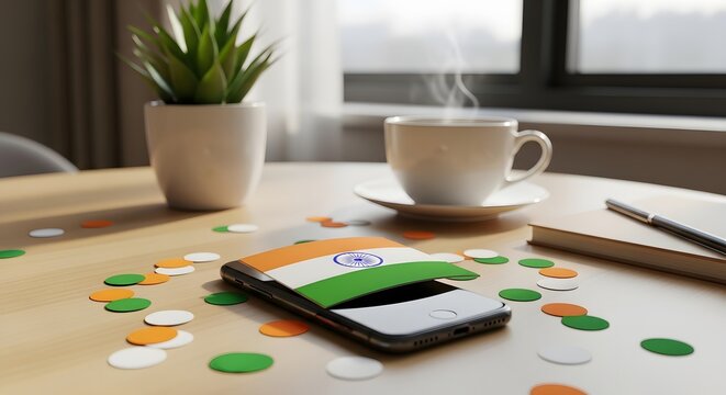 Patriotic portrait of indian army soldier in camouflage uniform with tricolor background for happy republic celebration and independence theme reflecting national pride and respect
