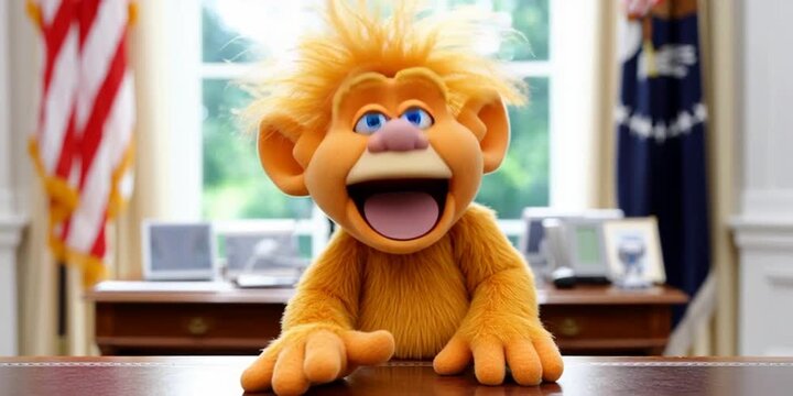 An orange troll puppet is in the White House Oval Office