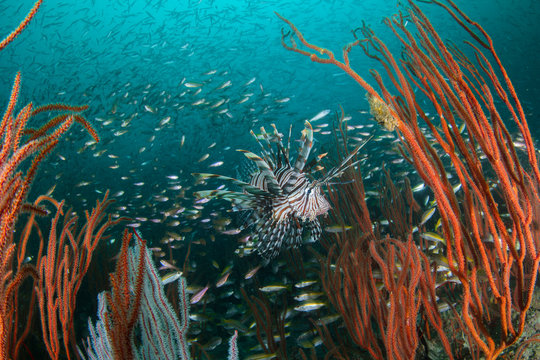 Exotic сolorful group underwater fish ocean aquarium beautiful tropical coral reef. Oceanarium animal wildlife marine ecology panorama water nature snorkel diving ecosystem environmental save planet