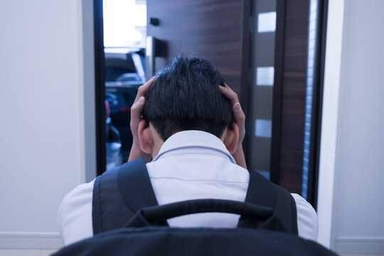 Children depressed because they cannot go to school Faceless image of social problems such as truancy