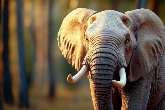 Majestic African elephant trunk raised against backdrop of setting sun capturing grandeur of nature wildlife