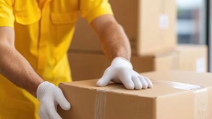 Professional movers packing and loading items, care in moving services, residential relocation, teamwork in motion.
