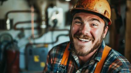 Smiling plumber providing emergency sink repair service