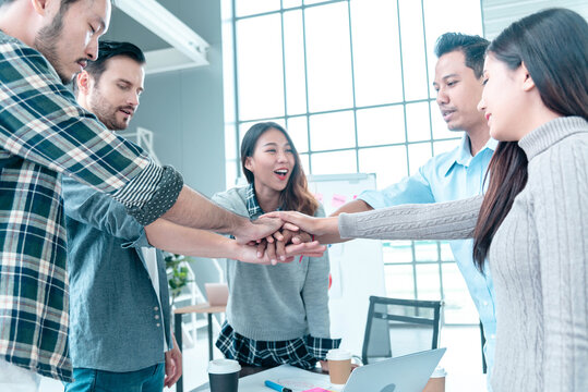 Teamwork Concept. Collaboration Team Meeting Communication with Business Teamwork Working Together in Conference Room. Top view of Diversity Partner Business Meeting Trust in Businessman and Team.