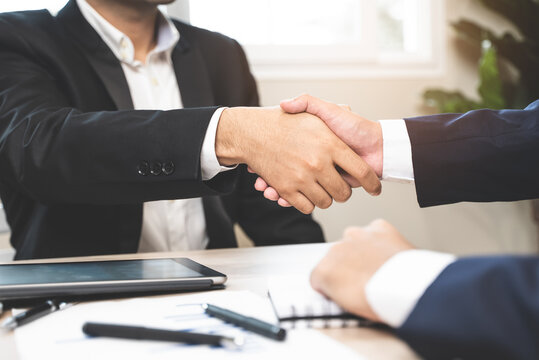 group of successful business people meeting. client and suppliers shaking hands after deal agreement completed.