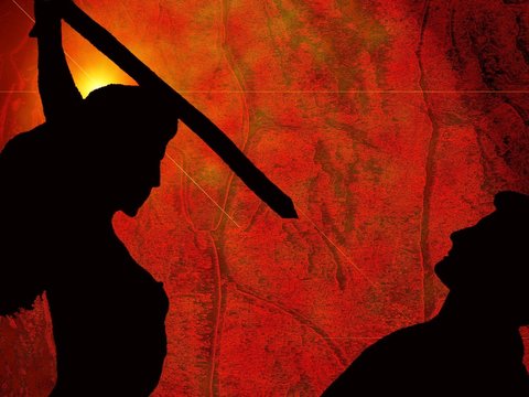 Main pressant le monde sur un presse-agrumes pour faire sortir le sang