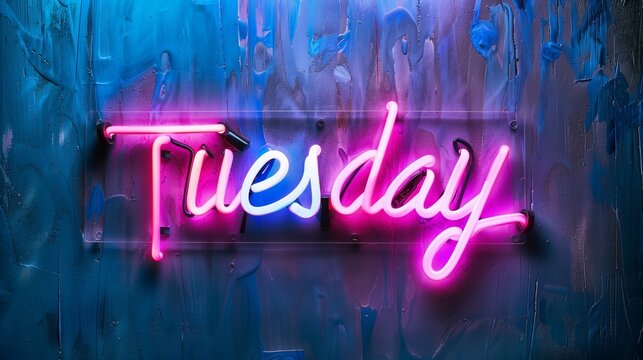 Neon Tuesday text on dark wall background