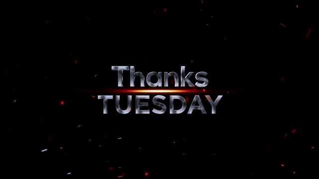 Thanks tuesday chrome text with sparks and glowing effect on black