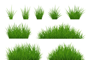 Green fresh young spring grass isolated on white background, vector illustration. Blade of grass and greenery bunch.