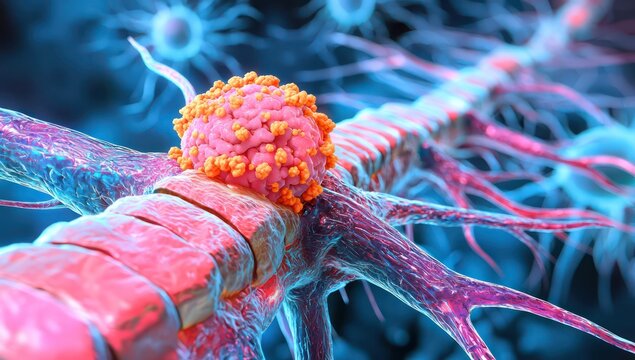 Detailed medical illustration showing spine cancer or tumor with structural emphasis.