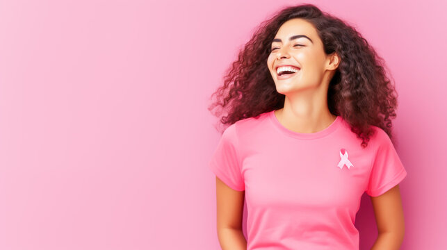 Pink ribbon and stethoscope on pastel pink background, Symbol of womens breast cancer awareness, Health care and medical concept.