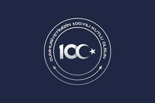 100th year of turkish republic. (Turkish: Cumhuriyetimiz 100 yaşında) The Republic of Turkey is 100 years old. Vector illustration, poster, celebration card, graphic, post and story design.