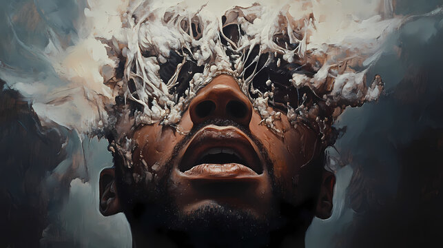 Fragmented realms of turmoil - an artwork that encapsulates the core of internal disarray and emotional turbulence. Mindscape Collisions. Illustration