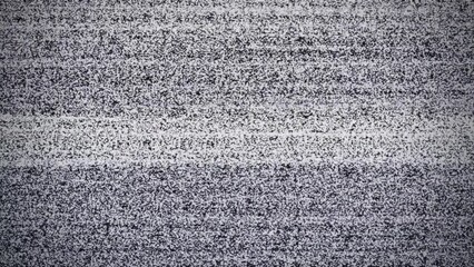 Vintage switch on, turn off television. Analog Static Noise texture. Monochrome, black and white offset flickering noise. Screen damage TV effects and artifacts. VHS. Bad interference. Retro 80s, 90s