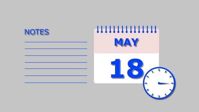 May 18 Calendar royal blue color 4k illustration, with Free for Notes and Writing element. Light gray background 4k illustration.