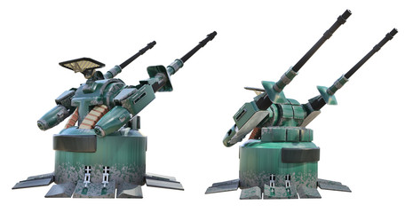 Scifi turret 3d rendering over white background