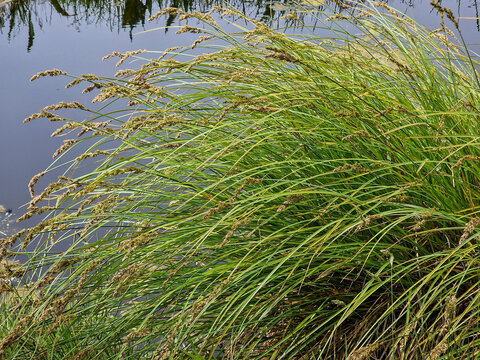 Greater tussock-sedge (.Carex paniculata), flowering