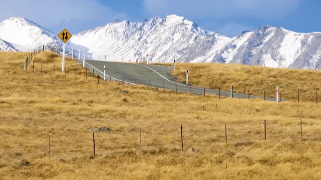 Windy Grasses Beside Mountain Road at Lake Tekapo