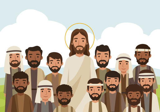 Jesus Christ and the Twelve Apostles Illustration.