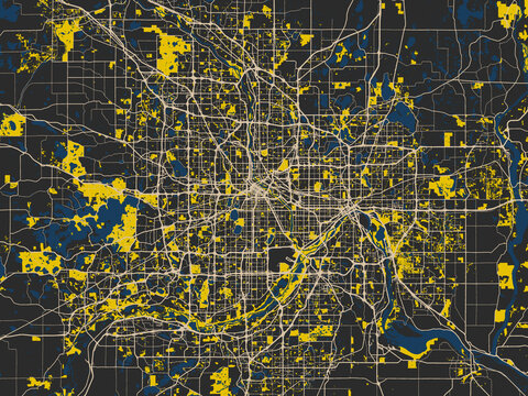 Minneapolis Minnesota USA Map Long Exposure Night Lights Cityscape