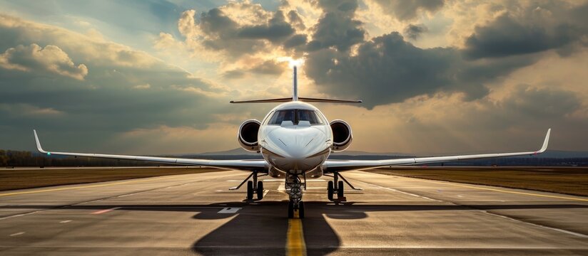 Ready for take off, a private jet waits on the runway.