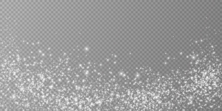 Christmas background. Powder dust light PNG. Magic shining gold and white dust. Fine, shiny dust bokeh particles fall off slightly. Fantastic shimmer effect. Vector illustrator.