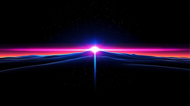 Square rectangle picture frame with two tone neon color motion graphic on isolated sky blue and red color light black background.