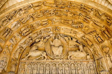 Romanesque tympanum in The Cathedral of Huesca, Aragon, Spain, Europe