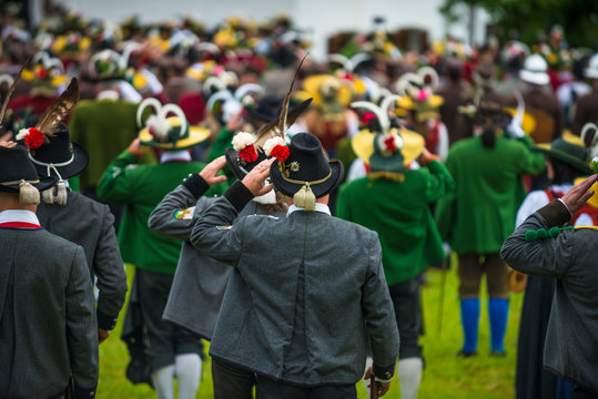 INNSBRUCK, AUSTRIA - AUGUST 29, 2019: Innsbruck town center with lots of people and street cafes in Innsbruck, Tyrol, Austria