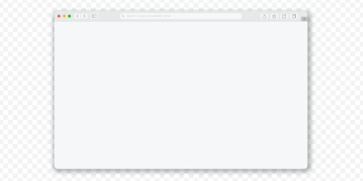 Realistic browser window set with toolbar, search bar, and subtle shadow on a transparent background. Ideal for web design mockups and UI presentations. Vector illustration.