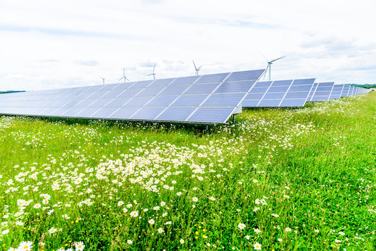Day view solar panel system installed on UK field