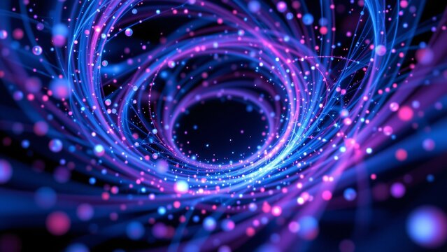 A swirling vortex of deep ultramarine and vivid violet light intertwines, resembling a nebula compressed into strands