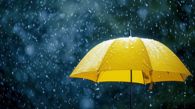 Lonely yellow umbrella under the rain, symbol of the wet rainy season.