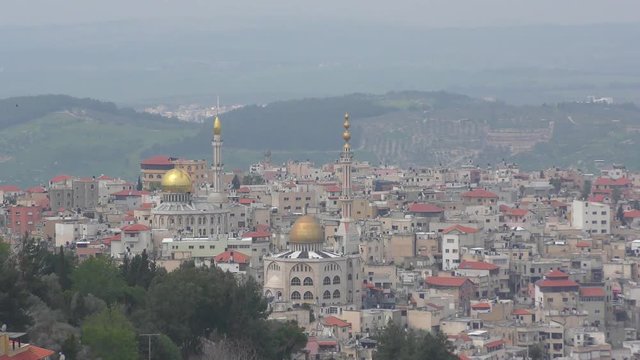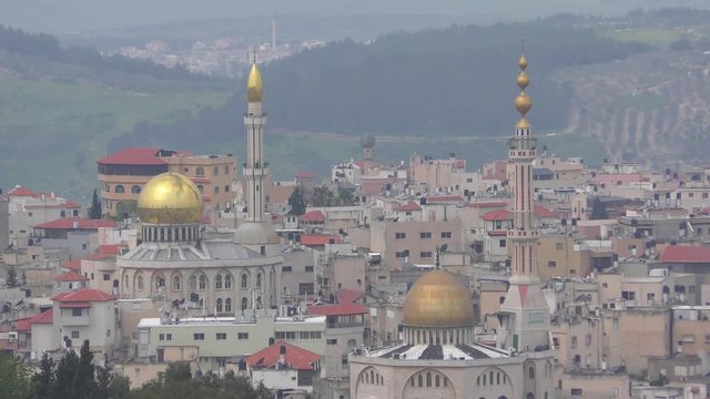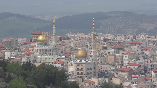 Mosques and minaret in Umm El Fahm, an Arab town with citizens of Israel. Umm al-Fahm is the social, cultural and economic center for residents of the Wadi Ara and Triangle regions.