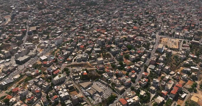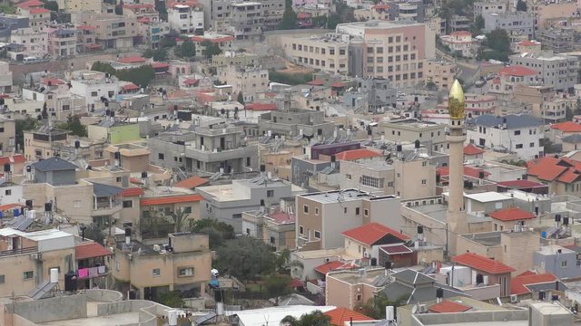 Um al Fahm city rooftops in Northern Israel, Drone footage.