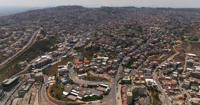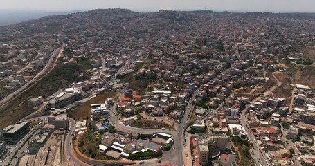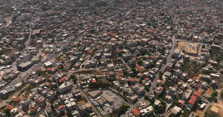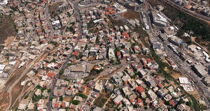 Um al Fahm city rooftops in Northern Israel, Drone footage