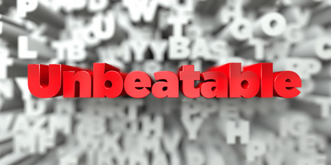 Unbeatable -  Red text on typography background - 3D rendered royalty free stock image. This image can be used for an online website banner ad or a print postcard.