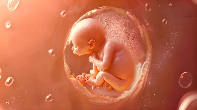 Artistic photorealistic clip of fetus in the womb. Early childhood, pregnancy, miracle of life, fertility, pro-choice, abortion rights and anti-abortion topics illustration.