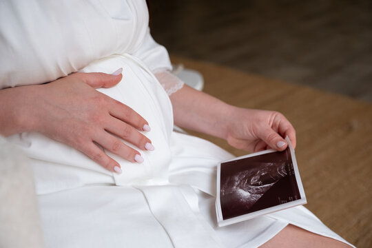 A pregnant woman admiring an ultrasound image of her unborn baby