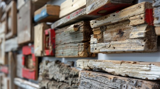 Eco-friendly wreath with unconventional materials like driftwood, stones, and fabric scraps