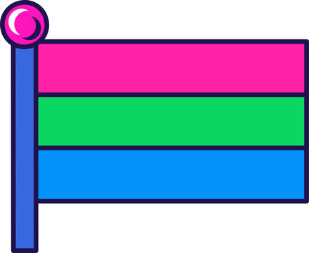 Flag of Poly Sexual Pride on flagstaff. Traditional and progressive unconventional sexual relations between sexes groups. Color stroke vector isolated on white background
