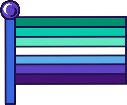 Flag of Trans Inclusive Gay Men Pride on flagstaff. Traditional and progressive unconventional sexual relations between sexes groups. Color stroke vector isolated on white background