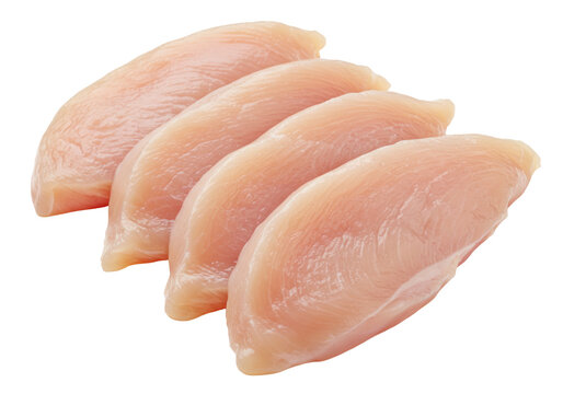 Fresh raw chicken breast fillets isolated, uncooked poultry meat cutlets for healthy cooking on transparent background PNG
