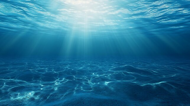 Underwater Scene with Sun Rays Shining Through Ocean Water Surface